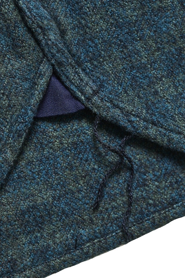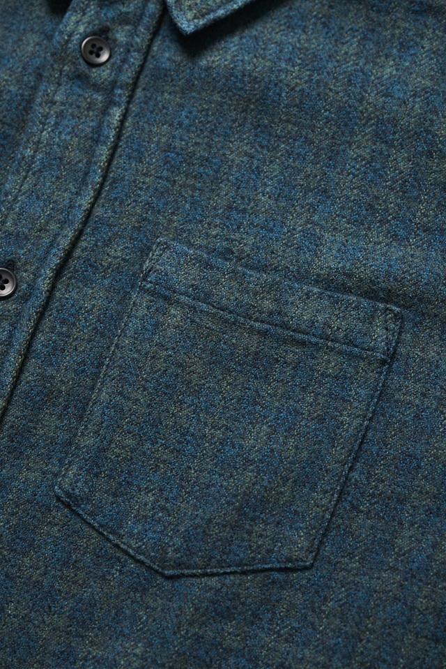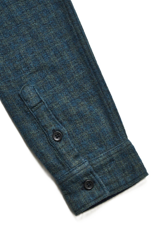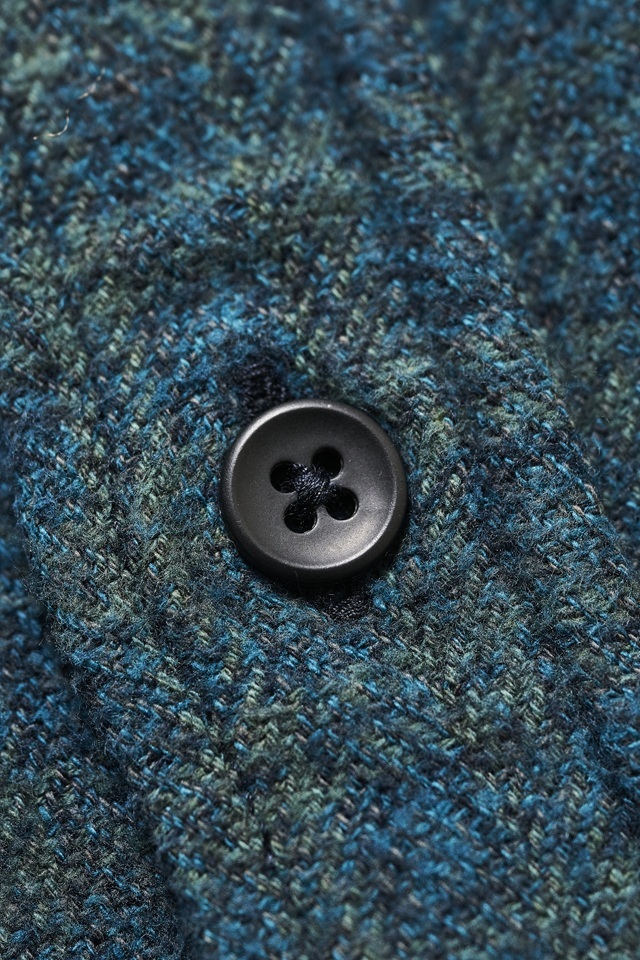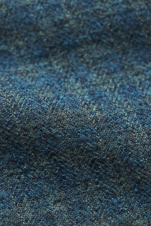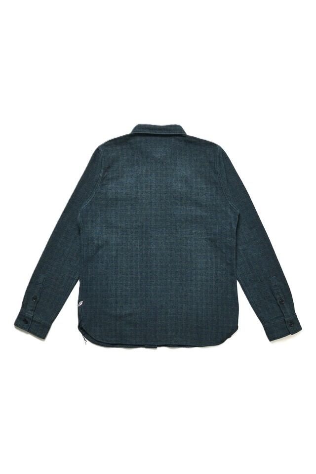 コットンツイードのチェックシャツを、縫製後に職人が一枚ずつ手作業でインディゴ染めを施したアイテム。