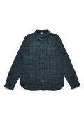 インディゴ オーバーダイ コットンツイード チェックシャツ - グリーンベース