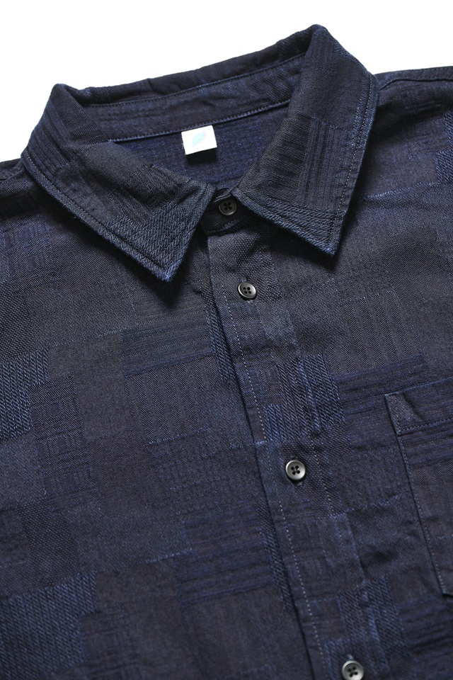 ジャカードパッチワークシャツ - ダブルインディゴ