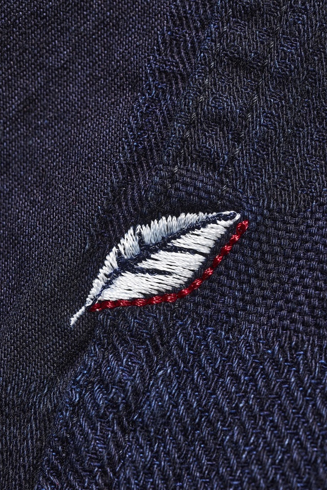 着込むほどにインディゴが経年変化を重ね、ジャカードならではの立体感が際立ち、生地のディテールが浮かび上がってより奥行きのある表情へと育っていきます。