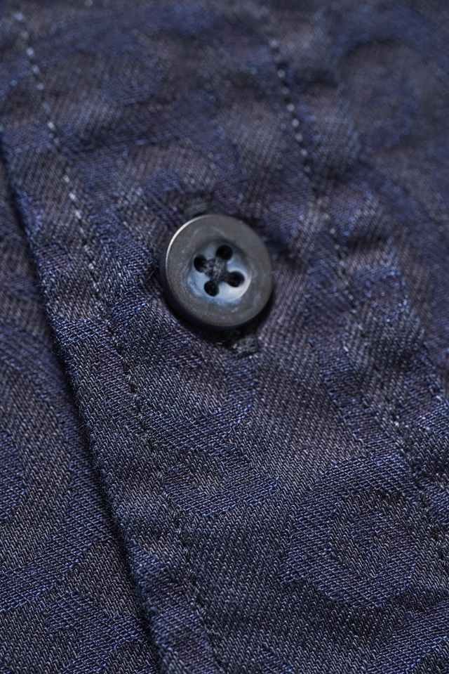 濃色インディゴのワントーンで一見主張は控えめですが、ジャカード織機によって織り出された立体感のある柄は、角度や光の当たり方により美しく浮き上がってきます。