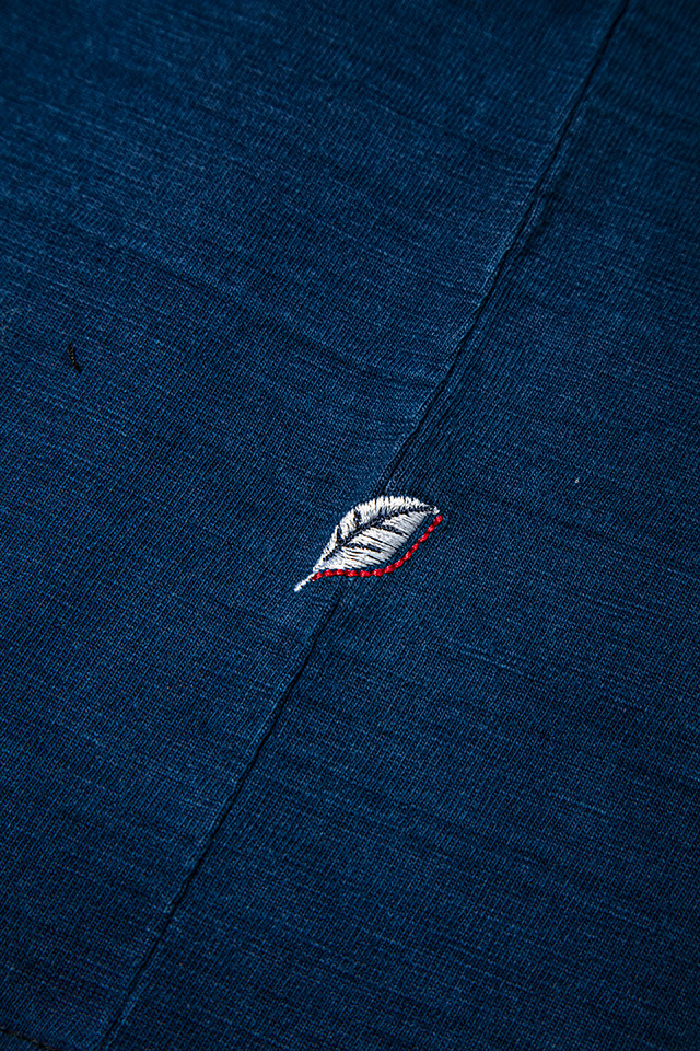 太さにムラのある糸で編みたてられた、スラブ感の強い天竺素材の後染めインディゴTシャツ。